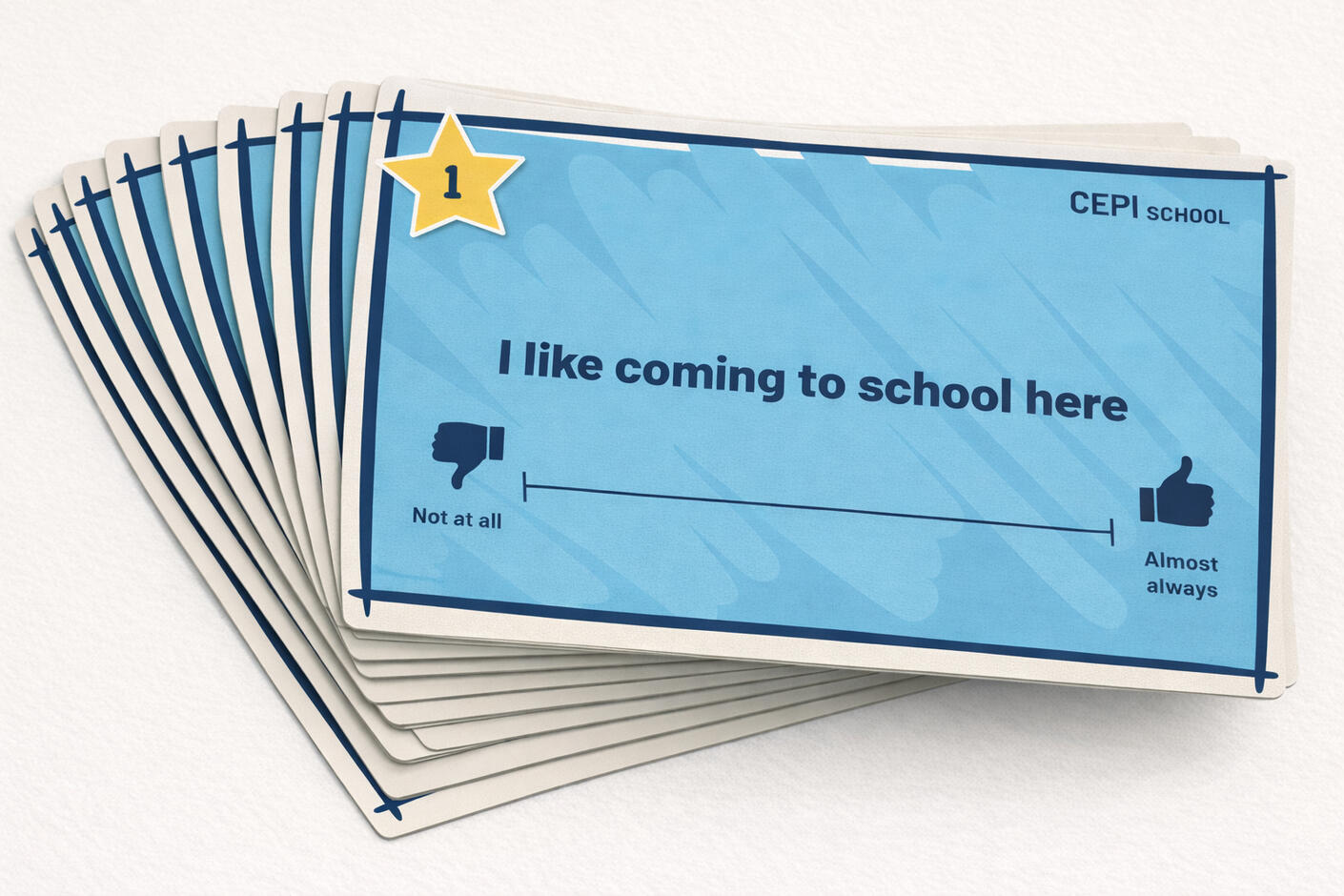 CEPI uses a small set of carefully worded statements, presented visually, to invite children to reflect on their experiences.Children indicate where they sit on each statement and are then invited to talk about their response. The interview is not scored in isolation, nor is it intended to replace clinical judgment. It is a tool to support thoughtful, developmentally sensitive conversation.