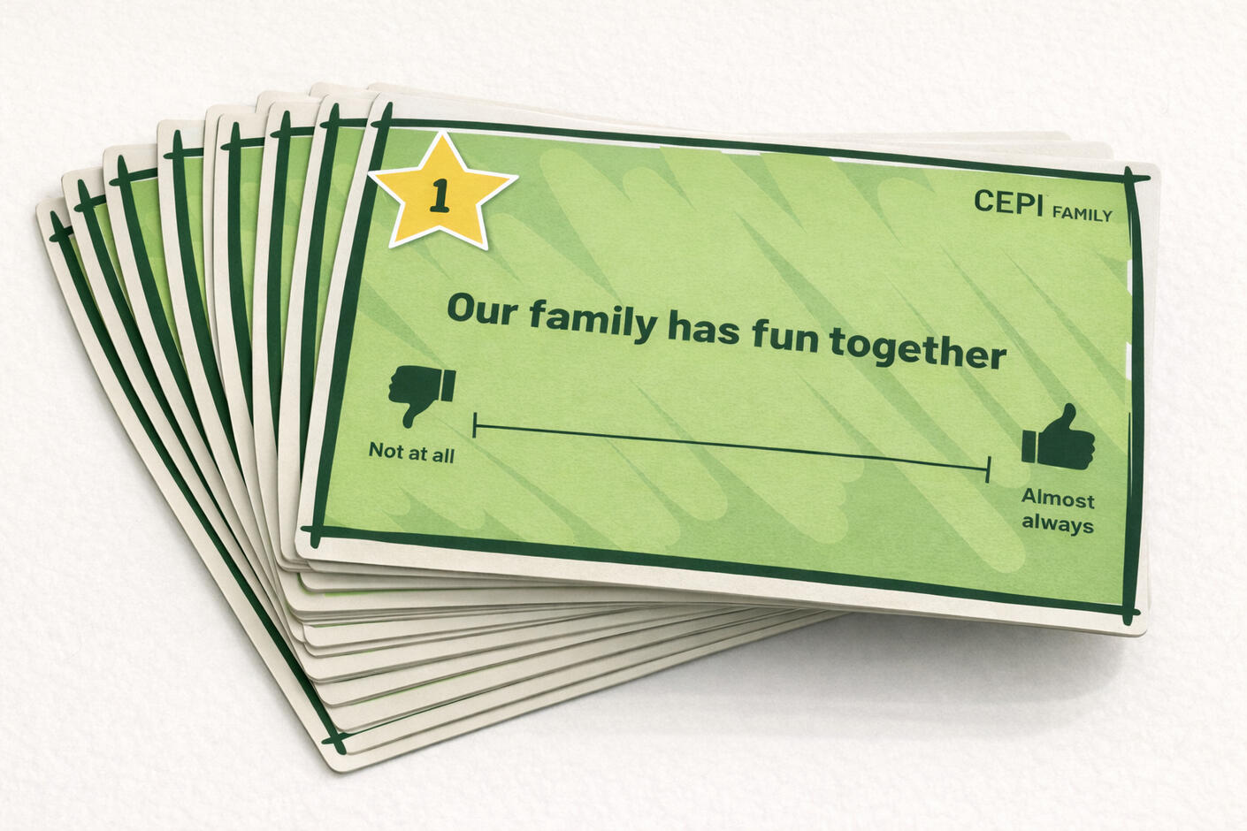 CEPI uses a small set of carefully worded statements, presented visually, to invite children to reflect on their experiences.Children indicate where they sit on each statement and are then invited to talk about their response. The interview is not scored in isolation, nor is it intended to replace clinical judgment. It is a tool to support thoughtful, developmentally sensitive conversation.